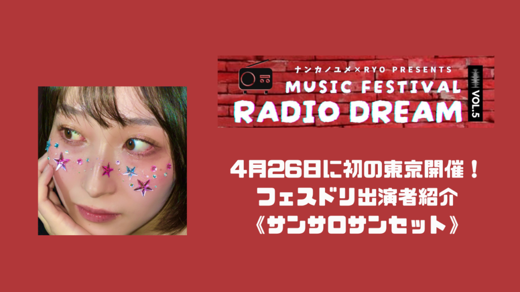 【4月26日開催】「Music Festival Radio Dream vol.05」出演者紹介<サンサロサンセット>!私がパーソナリティーを務めるネットラジオNFRSにて毎週木曜22:30~オンエア中のラジオ番組「Radio Dream」。今回、「Radio Dream」の主催…