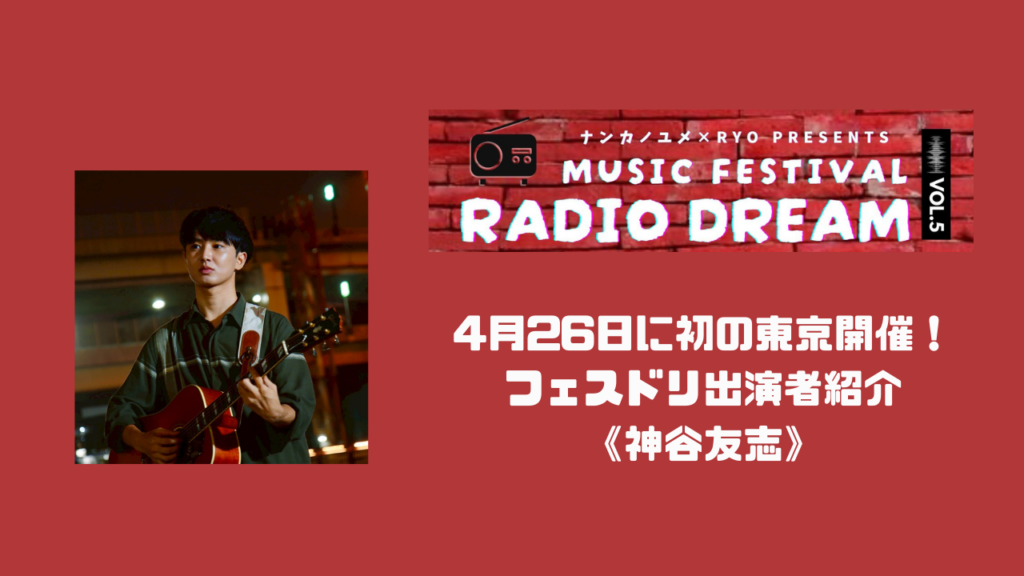 【4月26日開催】「Music Festival Radio Dream vol.05」出演者紹介<神谷友志>!私がパーソナリティーを務めるネットラジオNFRSにて毎週木曜22:30~オンエア中のラジオ番組「Radio Dream」。今回、「Radio Dream」の主催…