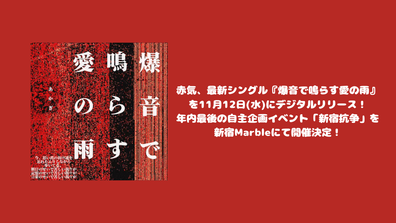 赤気、最新シングル『爆音で鳴らす愛の雨』を11月12日(水)にデジタルリリース!年内最後の自主企画イベント「新宿抗争」を新宿Marbleにて開催決定!