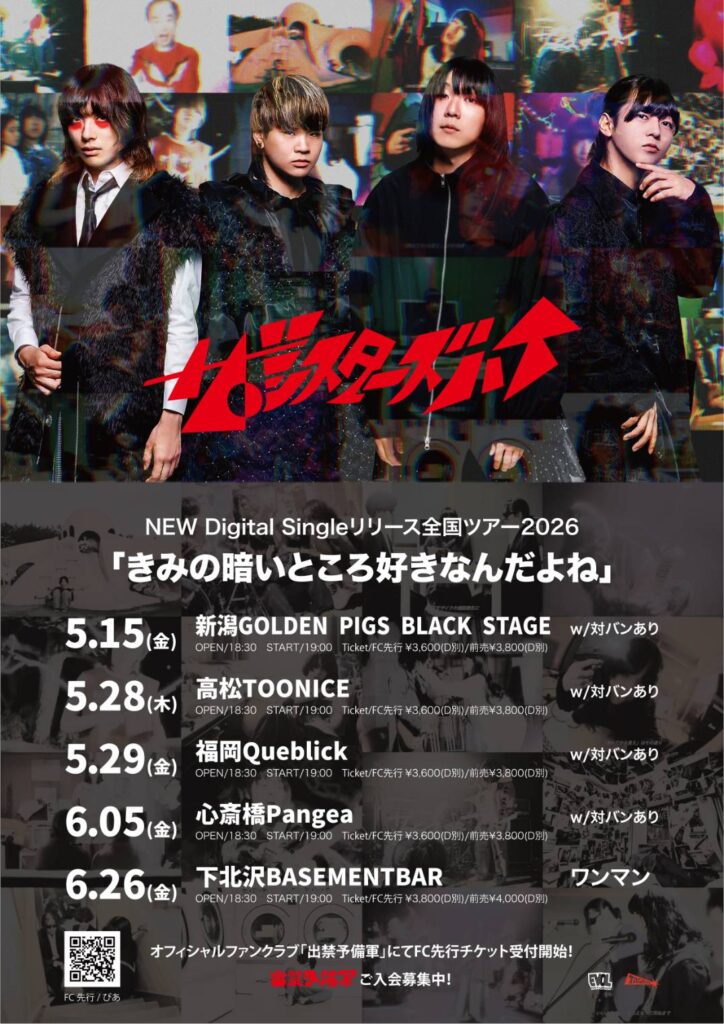 なお、デジタルシングル「きみの暗いところ好きなんだよね」の詳細については、後日発表予定とのこと。また、2026年1月17日(土)19:00から1月25日(日)23:59まで、オフィシャルファンクラブ「出禁予備軍」にてFC先行チケットの受付が行われる。