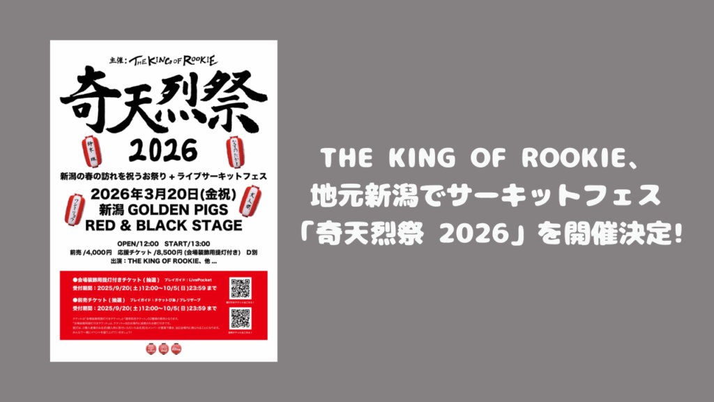 THE KING OF ROOKIE、地元新潟でサーキットフェス「奇天烈祭 2026」を開催決定!