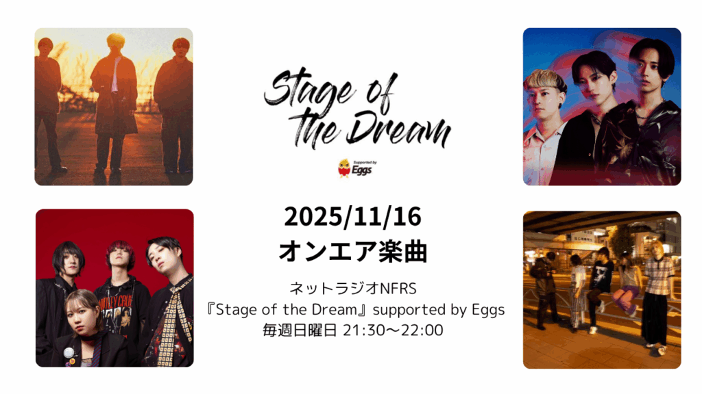 《11月09日OA楽曲》『Stage of the Dream』supported by Eggs毎週日曜日 21:30~22:00ネットラジオNFRSにてオンエア中の『Stage of the Dream』! こちらは、すべてのアーティストとすべてのリスナ…